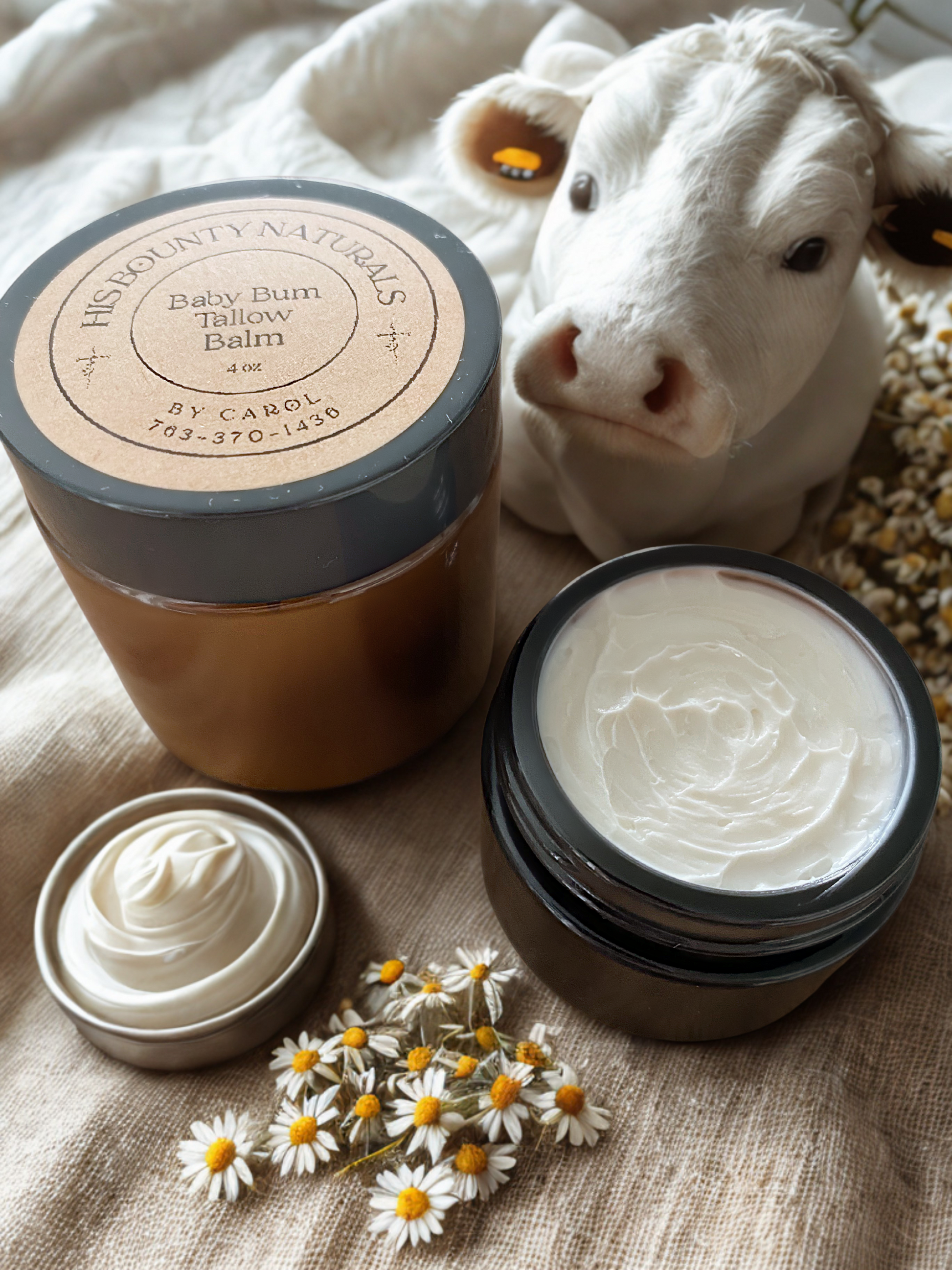 Our Baby Bum Tallow Balm is a gentle, all-natural gift crafted to calm diaper rash and cherish sensitive skin. Inspired by God’s nourishing creation, this balm blends premium, baby-safe ingredients like grass-fed tallow, organic shea butter, and non-nano zinc oxide to form a protective barrier that soothes irritation and prevents redness.
